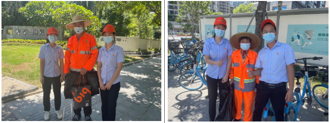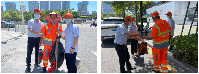 百立勤总部各职能部门组成现场的公益小组,并分组一对一到深圳宝安区及南山区环卫工人劳作一线送去夏日里一份特殊的“清凉”,把一份份装满爱心与祝福的降暑物资直接送到了作业在一线的环卫工人手里。并嘱咐他们在辛勤工作的同时注意防暑降温,保重身体。